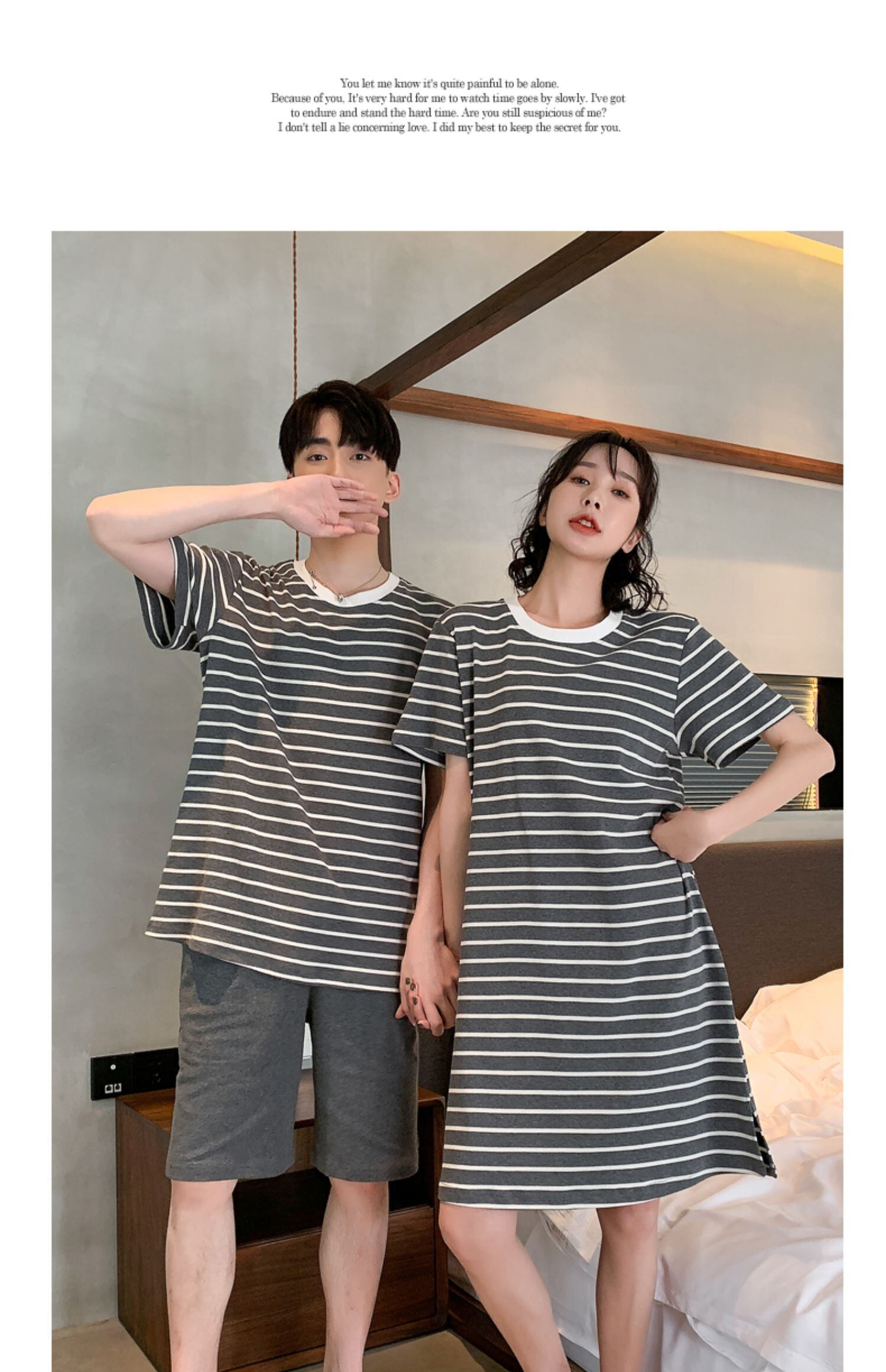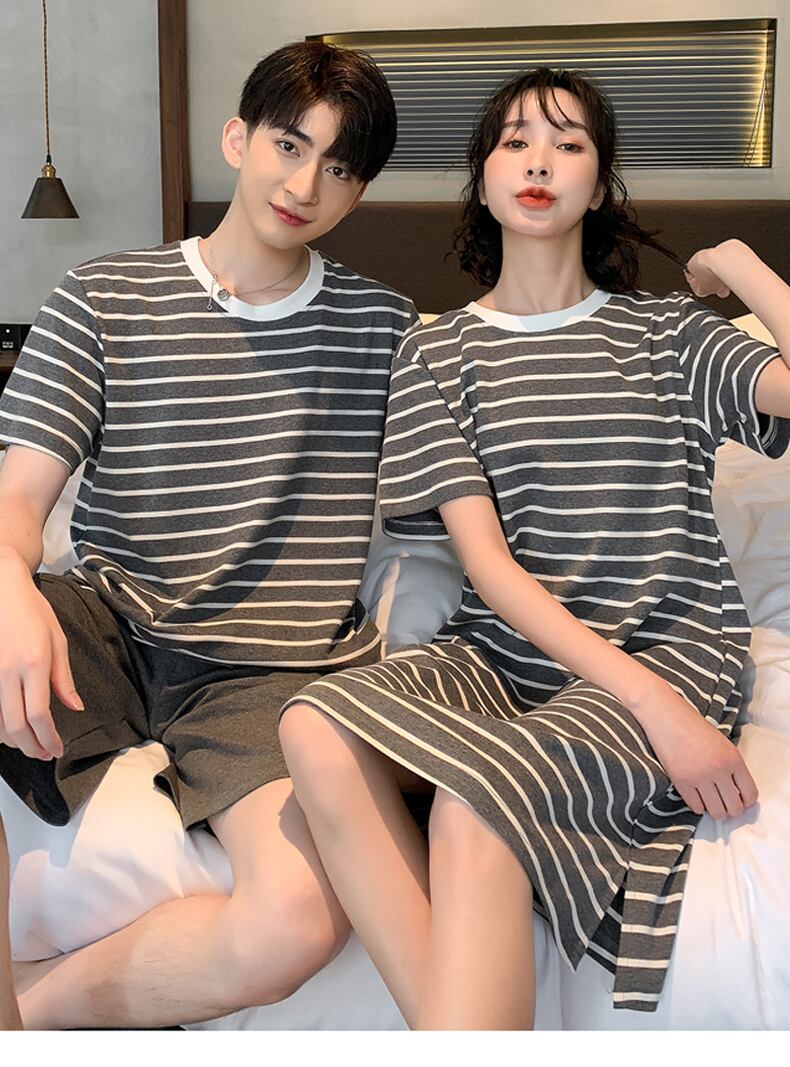 色:半袖グレーストライプ20562ネグリジェ+20620男性,半袖グレーストライプ20563女性+20620男性